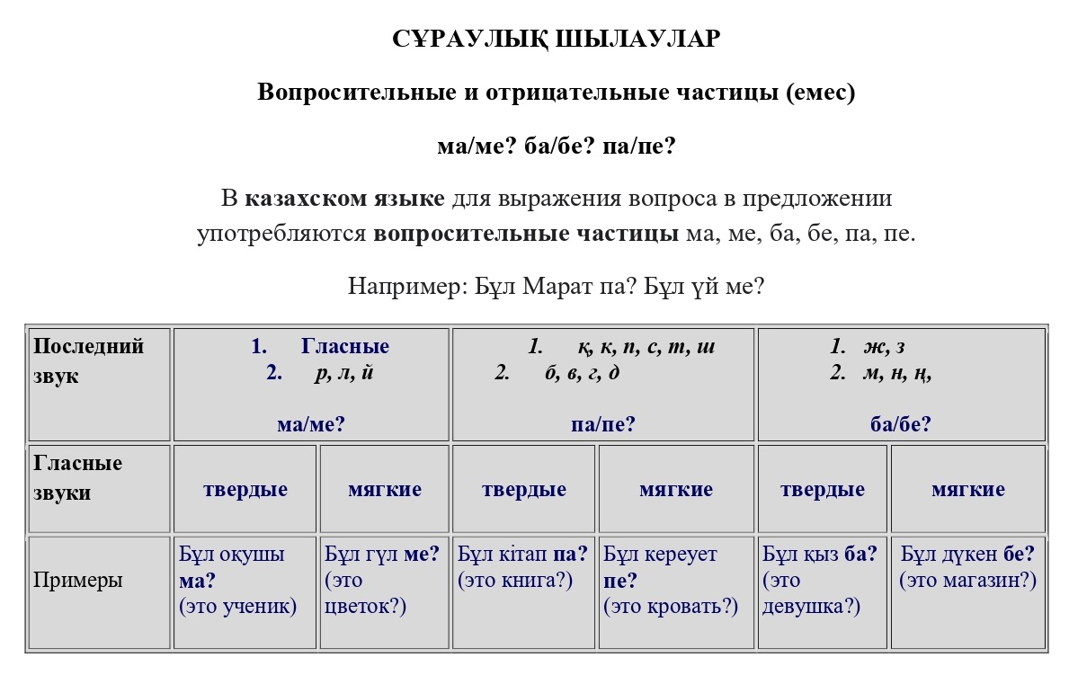 Сұраулық шыраулар (емес) ма/ме? ба/бе? па/пе?